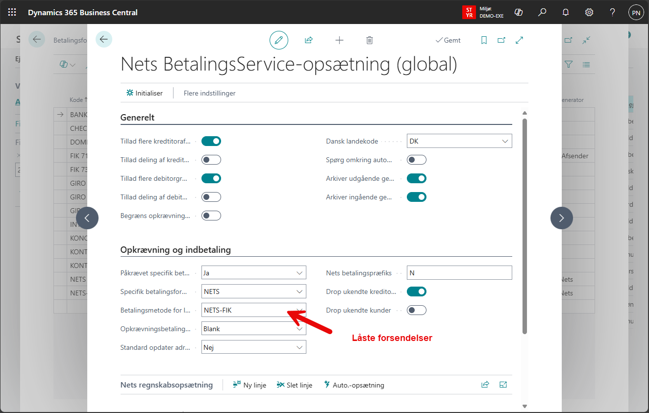 a. Find "Nets Betalingsservice-opsætning (Global), og åben kortet